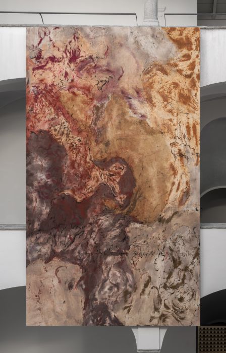 Le opere di Monia Ben Hamouda combinano astrazione e figurazione, evocando forme e tracce di memoria.