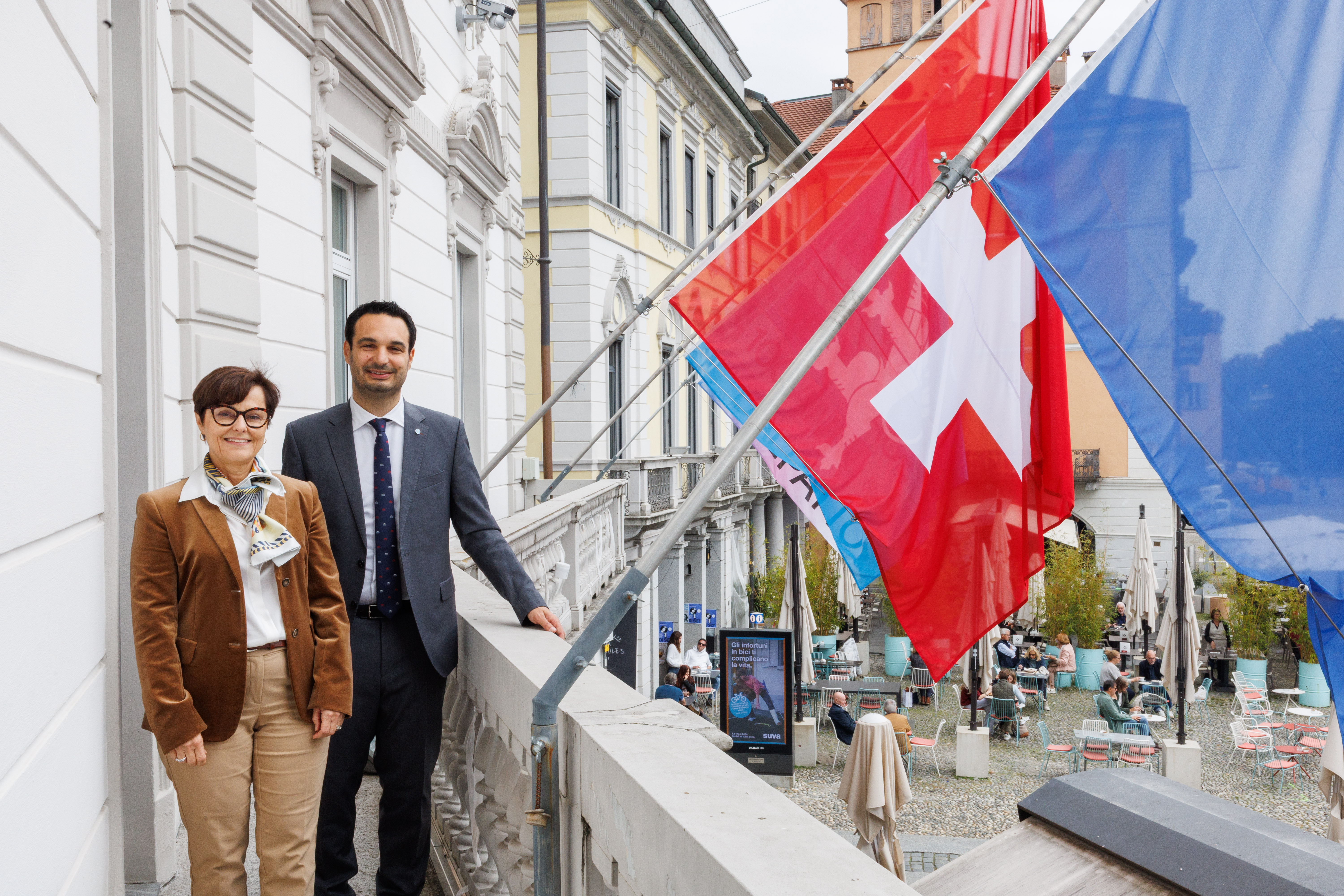 Prima di recarsi nella sala del Municipio, dal balcone di Palazzo Marcacci il Sindaco ha mostrato all’Ambasciatrice e ai suoi accompagnatori la suggestiva Piazza Grande. Ha suscitato particolare curiosità il riferimento alla banconota svizzera da 20 franchi, che raffigura il celebre schermo del Locarno Film Festival.